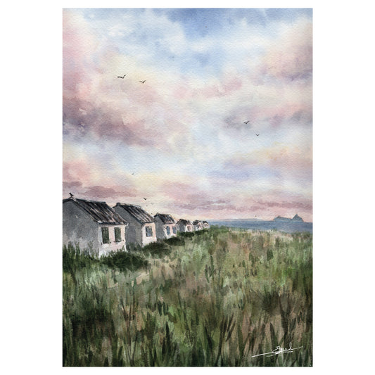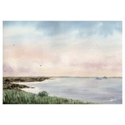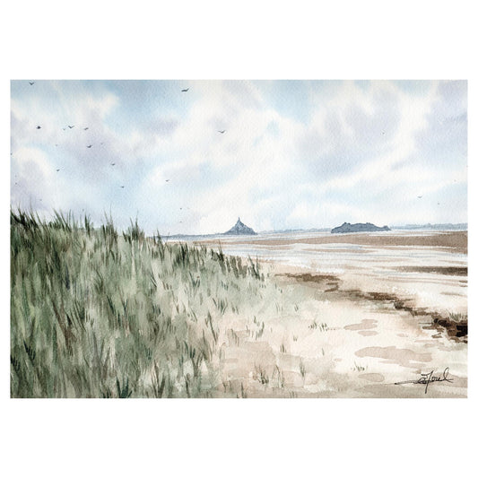 À travers mes aquarelles, partez à la découverte de la cabane Vauban, du Bec d'Andaine ou de la Pointe du Grouin. À mesure que l'on descend vers le sud, les points de vue sur le Mont évoluent, c'est magnifique !