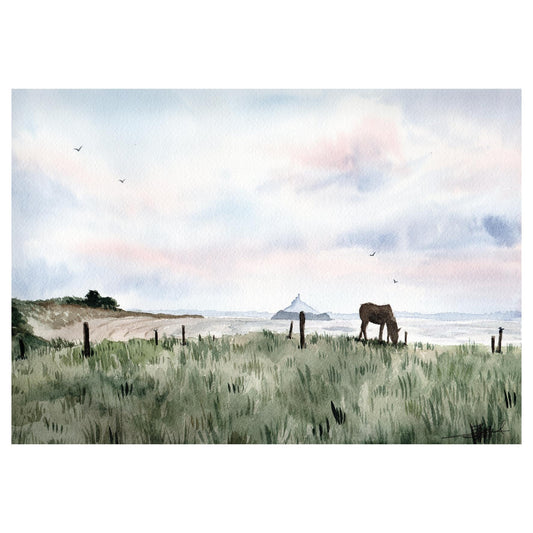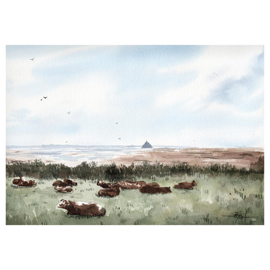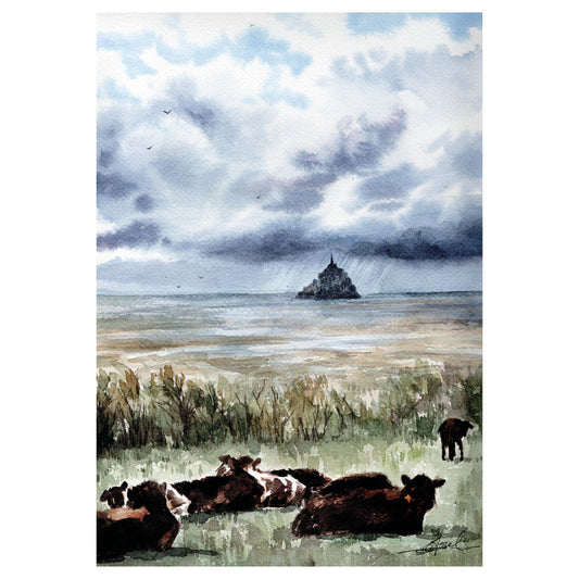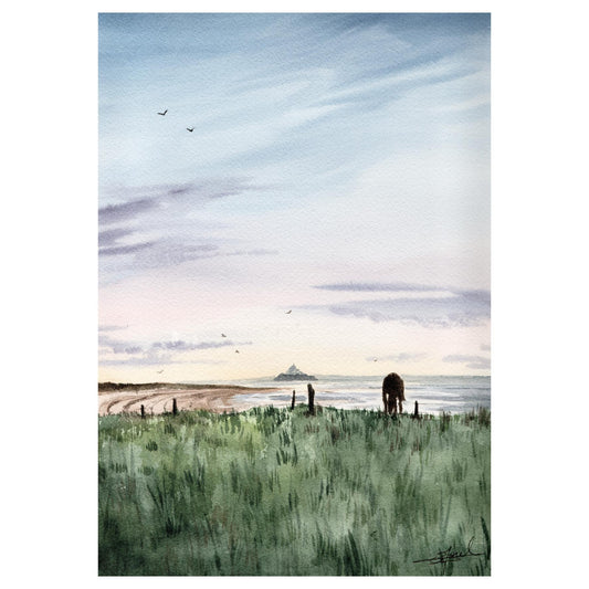 À travers mes aquarelles, partez à la découverte de la cabane Vauban, du Bec d'Andaine ou de la Pointe du Grouin. À mesure que l'on descend vers le sud, les points de vue sur le Mont évoluent, c'est magnifique !